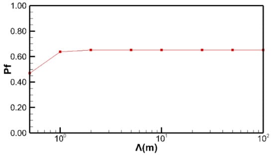 The change in pf with different correlation scales (Λ = λx = λy).