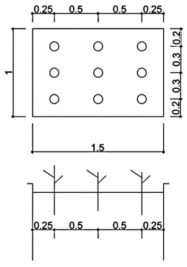 Nine potato tubers were planted in each lysimeter on the 1 November 2020.The in-row spacing between plants was 0.3 m, and the spacing between rows was 0.5 m as shown in Figure 3.