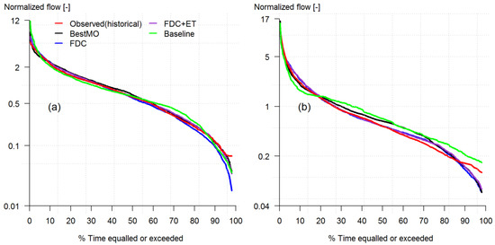 - We computed the dimensionless mean annual FDC using the normalized daily streamflow from step ii. Such curves represent the exceedance probability of streamflow in a typical year [22,23].
