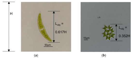 The original images used to test the effect of relative object size on model performance. (a) Closterium sp. (b) Pseudopediastrum boryanum.