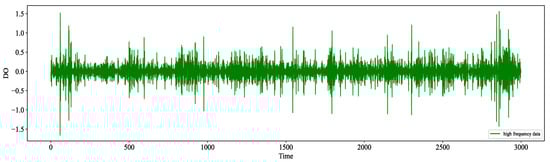 In processing time series data, haar wavelet, db wavelet, and sym wavelet are the three commonly used methods for processing wavelet decomposition. Compared with the other two wavelet bases, sym wavelet has better symmetry. So, we chose sym wavelet to decompose the data. Through wavelet transformation, we decomposed the water quality indicator data. The water quality indicator DO decomposition results are shown in Figure 9 and Figure 10, including a set of low-frequency data and a set of high-frequency data. Low-frequency data corresponded to the essential characteristics of the original data, reflecting the trend changes of the time-series data under steady-state conditions, which can well reflect the main change pattern of the data, also known as the trend term. The high-frequency data, on the other hand, mainly contained the details of the original data, reflecting the volatility and nonlinearity of the original data based on the low-frequency steady-state data, which is also called the fluctuation term.