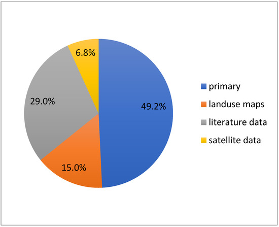 Studies using primary data (Figure 6) were the most abundant (49.2%), while 36.8% of the studies considered more than one ES (Figure 7). Benefit transfer represented the valuation technique most used (48.1%, Figure 8) with Geographic Information Systems (GIS) the software tool of choice of most of the studies (62.7%, Figure 9). Finally, an economic or ecological valuation was performed in just 57.2% of cases.