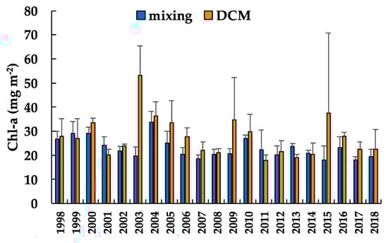 The seasonal ratio of mean to maximum Chl-a calculated for the DCM (4 months, August to November) is 0.36, much lower than the seasonal ratio of Lewis [] with 0.65 to 0.80. The three largest Chl-a concentration peaks could have biased this low value throughout 21 years, corresponding to the DCM (October 2003, October 2009, September 2015).