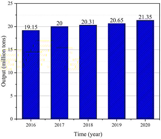 With the rapid development of the mariculture industry in recent years, lots of mariculture wastewater has been directly discharged into coastal waters, leading to eutrophication of receiving water bodies and a decline in the output and quality of mariculture products. Since 2002, China has been the world’s largest trading country in aquatic products, and its export volume of aquatic products has consistently been first in the world [1]. According to the Fishery Statistical Yearbook 2021 [2], the mariculture output of China has increased year by year from 2016 to 2020 (Figure 1). In 2020, the total output of marine products reached 52.24 million tons, among which the mariculture yield was 21.35 million tons, accounting for 40.87% of the total marine output.