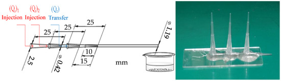 Two-tube or three-tube microfluidic devices can use different arrangements and combinations to fabricate single-droplet and double-droplet microfluidic elements. Alternatively, the diameter of the pipette tip material can be changed to achieve any desired microfluidic element [39]. Therefore, we use the characteristics of this device to separate and configure the elements.