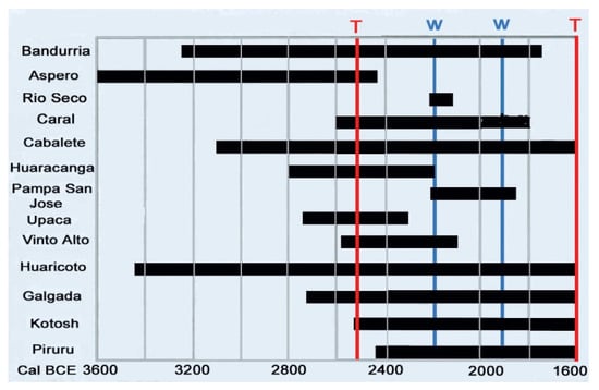 Figure 2) indicates an overlap period accompanied by intense El Niño activity. By ~1800 BC, most local sites were depopulated (