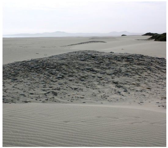 Figure 8. The results indicate ridge deposition closer to the coastline, owing to the higher hydrostatic pressure close to the shoreline encountered by low-mass, low-inertia sediment particles; here higher-pressure drag resistance leads to rapid particle settling closer to the shoreline. Subsequent flood events combine to produce a unitary, composite, multi-layered ridge, which is continually reworked and redistributed as currents shift deposits and extend the deposition length.