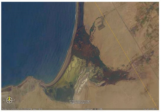 Figure 27 shows a Medio Mundo beach ridge segment and the marsh area that, prior to a major ENSO event, was a large part the agricultural area for the Archaic Period coastal site of Áspero [