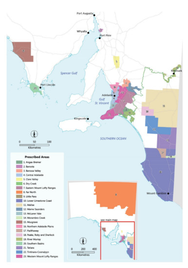 The inaugural Water Allocation Plans for the Southern Basins Prescribed Wells Area and the Musgrave Prescribed Wells Area were adopted on 31 December 2000 and 2 January 2001, respectively [22,23]. The regional resource management authority reviewed these water allocation plans in accordance with the requirements of the Act and subsequently made the decision to amend both plans due to their inability to respond appropriately to the changing climate. They also took the opportunity to combine them into a single plan through this process.