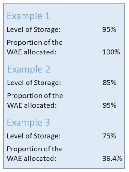 If the scenario testing indicated that the storage level variability was moderate (the level of storage modelled over the scenario testing period varied between 10–20%), the Upper Storage Trigger was set at 90%, thereby allowing minor declines in storage before allocations needed to be adjusted.