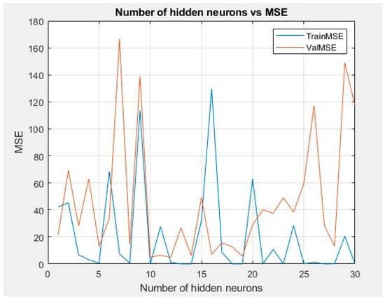 Nevertheless, the equations mentioned may not be accurate in determining the optimum number of hidden neurons required. Another method that is helpful is by calculating the mean squared error (MSE) of the training and validation data at varying numbers of hidden neurons.