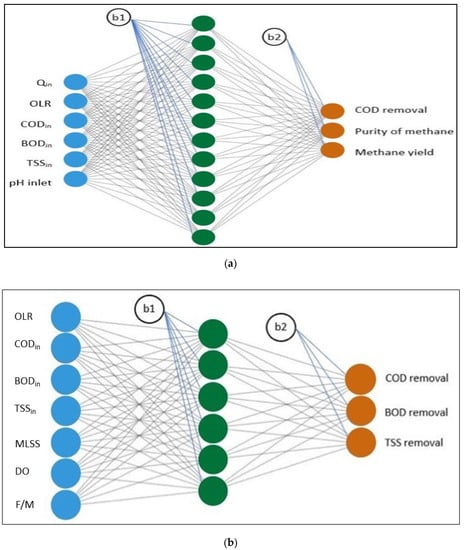 Neural network architecture for (a) anaerobic digestion, (b) aerobic process.