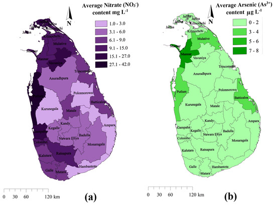 - Weragoda, S.K.; Kawakami, T. Evaluation of groundwater quality in 14 districts in Sri Lanka: A collaboration research between Sri Lanka and Japan. In Trends in Asian Water Environmental Science and Technology; Springer: Berlin/Heidelberg, Germany, 2017; pp. 151–155. [Google Scholar]
