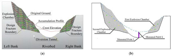As an efficient dam-construction means, blast-filling has achieved a balance between engineering investment and benefits, and blast-fill-dam construction can be efficiently completed under the topography, materials and investment constraints. First, explosives are buried in a dam abutment and the rock mass is instantaneously detonated by explosives. Then, the river valley is filled with the rock mass created by the explosion, providing all or part of the dam filling. Finally, according to the engineering design requirements, the surface layer of the blasting rockfill is trimmed, and it is decided whether dam heightening and waterproofing are necessary [19].