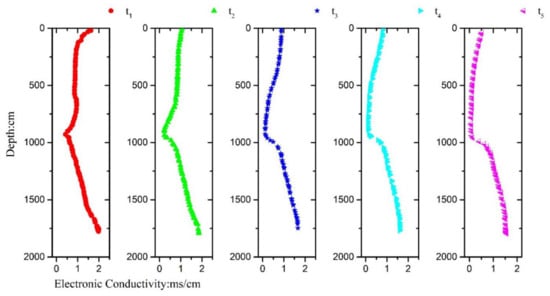 In light of this background theory and assumptions, the effect of using EC is derived by following the analysis described below. When the concentration of salt has a linear relationship with EC, the concentration at different depths is written as: