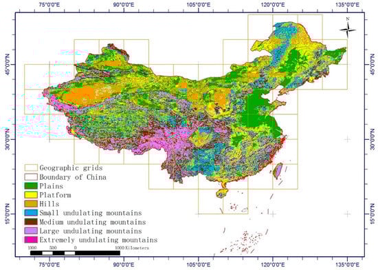 Spatial distribution of landform types in China. The data is obtained from the Resource and Environmental Science and Data Center (http://www.resdc.cn/Default.aspx assessed on 3 April 2022).