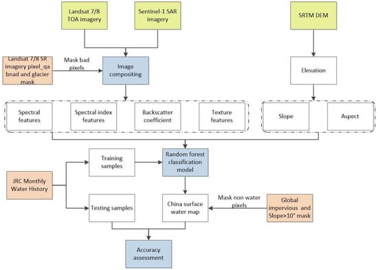 However, there is still a lack of surface water remote sensing extraction methods with a high spatio-temporal resolution and high precision, and which are automatic, reproducible, and suitable for large-scale applications. In this study, a region-adaptive random forest algorithm is designed on the GEE cloud computing platform for automatic surface water mapping with Landsat 7 ETM+, Landsat 8 OLI images, and Sentinel-1 SAR images as multi-sensor source data, by using China as a case study region. The visual and statistical comparison is made to verify the accuracy of the method and the derived surface water data set. The advantages and disadvantages will also be discussed.