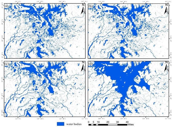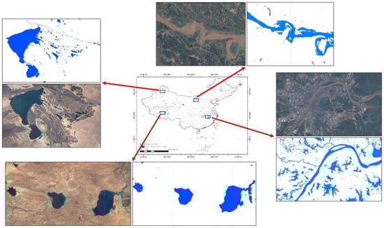 Surface water, including lakes, rivers, swamps, and other forms of water bodies, is an essential part of the earth’s water resources and plays a vital role in agriculture, industrial production and climate regulation. The quick and accurate acquisition of spatial distribution information of surface water is of great significance for water resources monitoring, management, and flood and drought disaster prevention [1,2]. Due to the influence of climate, seasons, and human activities, surface water is continuously changing [3]. The surface water changes exhibit highly dynamic characteristics both spatially and temporally and are supposed to be monitored in real- or near real-time. Remote sensing provides us the advantages of macroscopic, dynamic, continuous, and low-cost monitoring of the surface water distribution patterns with better understanding of spatiotemporal changes [4].
