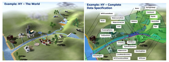 Abstraction of the real world in INSPIRE. Example from the “hydrography” data theme. Source: INSPIRE hydrography data Specification (figure source [16]).