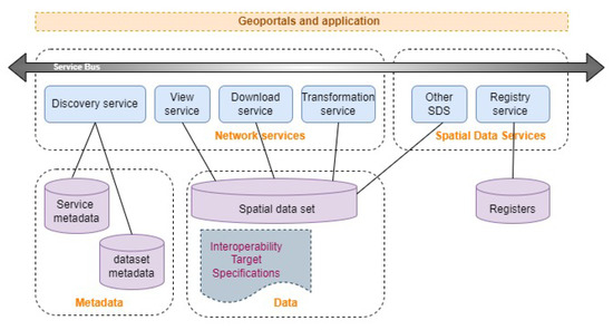 The legal framework for INSPIRE was set by the directive and related interdependent legal acts, which are called implementing rules, in the form of commission regulations and decisions. By design, the INSPIRE infrastructure is built upon national spatial data infrastructures (NSDIs) established and operated by the EU MS and EFTA countries, made compliant with the implementing rules, covering its core components: metadata, network services, interoperability of spatial datasets and services, data sharing, and monitoring and reporting [12,13].