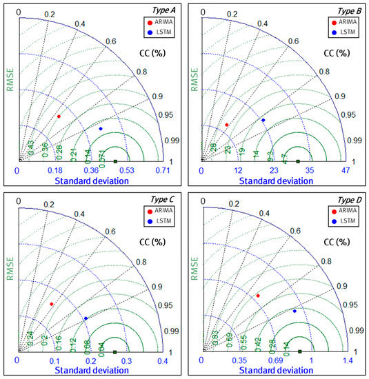 - Taylor, K.E. Summarizing multiple aspects of model performance in a single diagram. J. Geophys. Res. Atmos. 2001, 106, 7183–7192. [Google Scholar] [CrossRef]