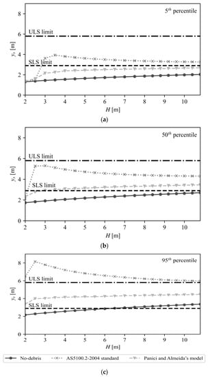 For the sake of clarity, Table 2 is introduced to outline the comparison between the two debris modelling approaches. It is clear that, while for the first approach the debris accumulation size is constant regardless of the hydraulic conditions, for the second approach, , vary with bulk flow characteristics and the length of the key log. Hence, it is clear that the AS5100.2-2004 standard provides a more rigid and simplistic approach compared to what is proposed by [48].