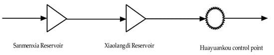 This paper chooses Sanmenxia and Xiaolangdi Reservoir as the research objects. Sanmenxia Reservoir and Xiaolangdi Reservoir are two large reservoirs located in the middle and lower reaches of the mainstream of the Yellow River. They are the backbone projects of the Yellow River hydraulic engineering system. They are of great significance to the development and utilization of water conservancy and hydropower resources in the Yellow River basin and the relief of flood control pressure in the lower reaches of the Yellow River. Under the condition of ensuring the flood control safety of Huayuankou, the optimal operation of Sanmenxia Reservoir and Xiaolangdi Reservoir in the Yellow River basin is studied. See Figure 4 for the locations of Sanmenxia, Xiaolangdi Reservoir and Huayuankou control points.