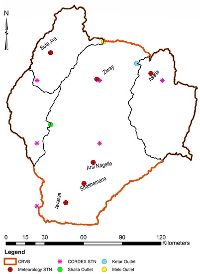 - Gadissa, T.; Nyadawa, M.; Behulu, F.; Mutua, B. Chapter 13 - Assessment of Catchment Water Resources Availability under Projected Climate Change Scenarios and Increased Demand in Central Rift Valley Basin. In Extreme Hydrology and Climate Variability; Melesse, A.M., Abtew, W., Senay, G., Eds.; Elsevier: Amsterdam, The Netherlands, 2019; pp. 151–163. ISBN 978-0-12-815998-9. [Google Scholar]