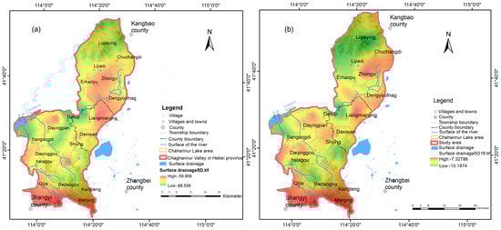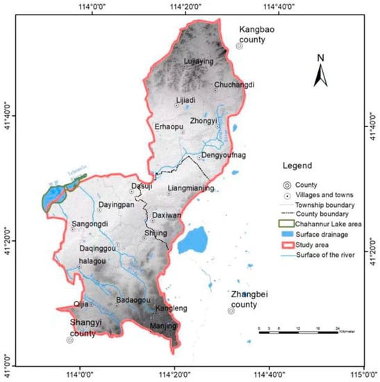 The Chahannur Basin is between 1270 and 1561 m above sea level, with high terrain surrounding and low terrain in the middle and gully development. The average annual rainfall is 364.1 mm and the average annual temperature is 3.7 °C. The natural geographical environment of the basin is simple; because of the continuous dissipation of groundwater resources, a large number of lakes shrink or even dry up. The land desertification phenomenon is serious.