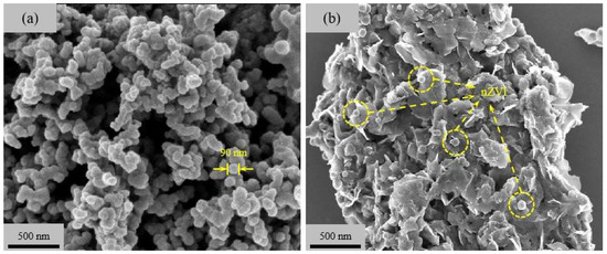 SEM images of (a) nZVI and (b) nZVI@H.