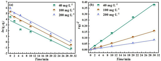 Quasi-first-order kinetics model (a) and quasi-second-order kinetics model (b).