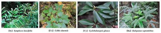 Leaves were also collected from each of the sampled species. Thirty to fifty healthy leaves (ten to fifteen in the case of Kalopanax septemlobus) were picked and wrapped in marked tinfoil to prevent water loss, and then put into a portable icebox (around 4 °C) for preservation. Leaf samples and twig samples were sent together for lab measurements.