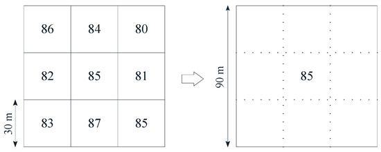 Meanwhile, in order to eliminate the influence of the horizontal resolution of the DEM, the nearest neighbor assignment method is used. The biggest advantage of this method is that it does not change any values of the cells in the input raster dataset and guarantees the DEM accuracy. Resampling of 30 m resolution into 90 m ASTER GDEM and HYDRO1K DEM in Figure 2.