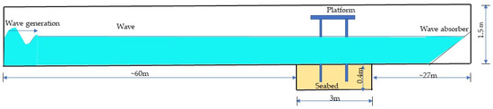 Past studies have revealed several considerations for the proper design of such offshore structures, such as the generation of both horizontal and uplift loads on elevated structures [2], the generation of significant overturning moment [3], and the concentration of the uplift demand in offshore platforms with towers [4]. Moreover, it was found that the interaction of waves directly with the platform’s structure reduces its strength or stiffness, and that waves change the properties of the seabed soil, weakening the foundation and decreasing the lateral soil resistance [5]. Therefore, in the process of analyzing the response of offshore structures under waves, both the response of the structure and the impact of the seabed soil around the structure on the overall stability of the structure under waves should be considered.