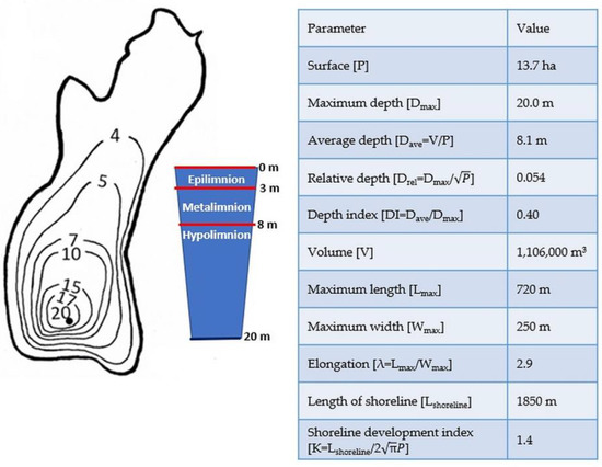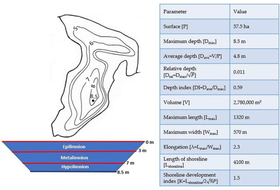 Human activities in the lake catchment area, which started in the nineteenth century, consisting of intensive development of industry, increasing the area of cities and agricultural lands, and intensive fertilization of fields and discharge of untreated sewage, among others, cause a decrease in the share of biologically active areas in which water retention occurs and thus an increase in the amount of pollutants flowing into the lake basins [1,2,3]. As a result of the influx of an excessive amount of organic and mineral pollutants, especially nitrogen and phosphorus compounds, the intensive primary production of phytoplankton and phytobenthic organisms is observed in aquatic ecosystems. This process, called eutrophication, occurs very slowly under natural conditions, but intensified anthropopressure in the catchments of water bodies leads to its acceleration and, consequently, faster degradation of lake ecosystems [4,5,6,7]. Symptoms of eutrophication and degradation of lakes include, among others, blooms of phytoplankton and cyanobacteria, lowered transparency of the water, reduced biodiversity at all trophic levels, increased amounts of bottom sediments, and increased levels of siltation [8]. The decomposition of organic matter causes the consumption of oxygen in the bottom layers of the lake, which triggers the process of supplying water with nutrients stored in the bottom sediments. In extreme cases, the degraded conditions occur in the entire volume of the lake, which results in the death of the fish and the exclusion of the water body from use [9,10].