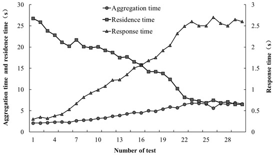 3.3.2. Response Time, Aggregation Time, Residence Time, and Aggregation Rate