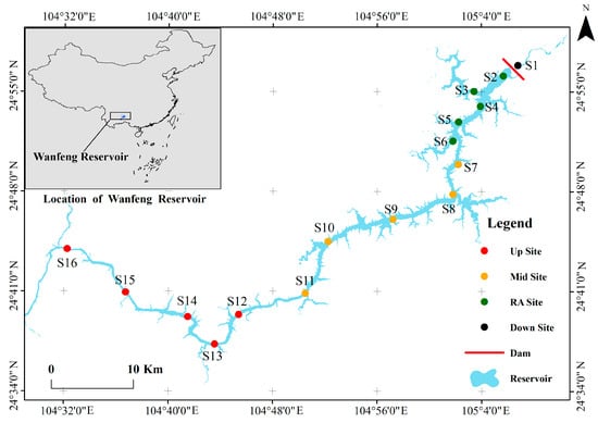 The Wanfeng Reservoir is located in the main stream of the Nanpan River, which belongs to the Pearl River system. It is one of the most important reservoirs in the karst plateau of southwest China and not only assumes an important role in people’s livelihood but also serves as an important ecological barrier in the upper reaches of the Pearl River [].
