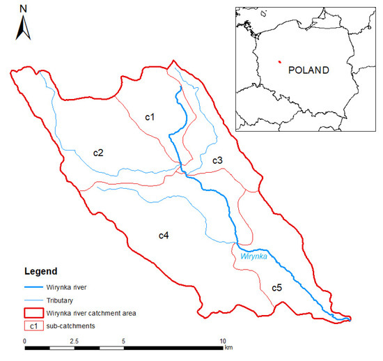 Location of the Wirynka catchment with the division into sub-catchments.