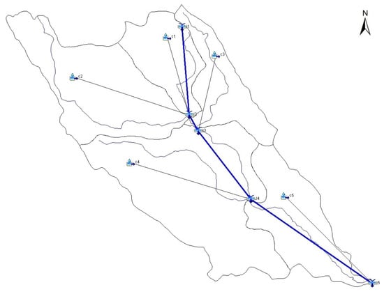 The Hydrologic Engineering Center’s Hydrologic Modeling System (HEC-HMS) is a hydrologic modeling software developed by the US Army Corps of Engineers of the Hydrologic Engineering Center (HEC). HEC-HMS is a semi-distributed conceptual hydrological model that simulates flow and runoff. The model requires spatial catchment data to simulate runoff. In addition, daily precipitation data and river flow data are required. The HEC-HMS model consists of a catchment model, a meteorological model, specifications, and input data (time-series data). Direct runoff is transformed to stream flow by a user-selected transform method. The transform options include several unit-hydrograph methods, the Clark time-area method, the kinematic wave method, ModClark, SCS Unit Hydrograph, and others. In this study, the elective method of transformation was the SCS Unit Hydrograph method because of the catchment data we had. The HEC-HMS model setup consists of four main model components: the basin model, the meteorological model, control specifications, and input data (time-series, paired data, and gridded data) [35,36,37] (Figure 3).