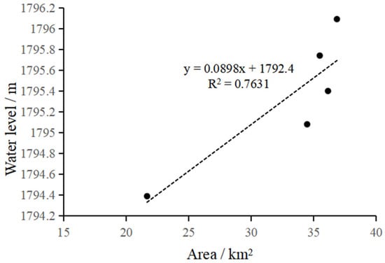 3.4. The Relationship between Lake Area and Water Level