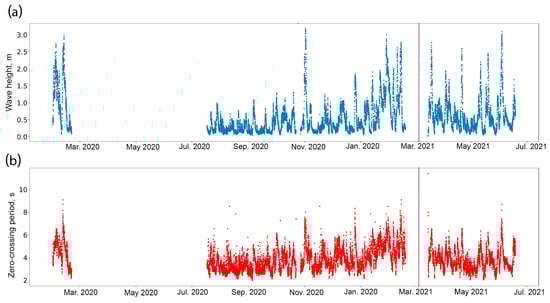 | 1 | 44.7191 N, 37.4343 E | 18 | 600 | 31 January 2020–21 February 2020; 17 July 2020–2 October 2020; 27 October 2020–18 February 2021 | wave height, zero-crossing period, spectra | 11,143 |