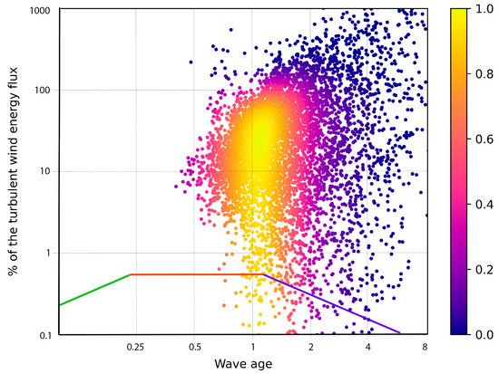 - Zakharov, V.E. Energy balance in a wind-driven sea. Phys. Scr. 2010, T142, 014052. [Google Scholar] [CrossRef]