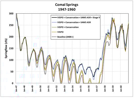 Comal Springs simulated springflow during a repeat of the drought of record under with the EAHCP measures implemented using the GWSIM-IV model [8]. The GWSIM-IV model was a widely accepted model that was developed in 1979 and was accepted without objection by the stakeholders.