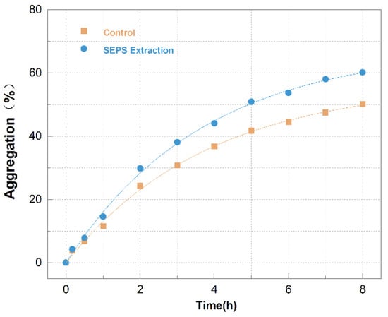 where the k (h−1) is the fitted pseudo-first-order rate constant, Ae (%) is the percentage aggregation at equilibrium, and At (%) is the percentage aggregation at a certain time.