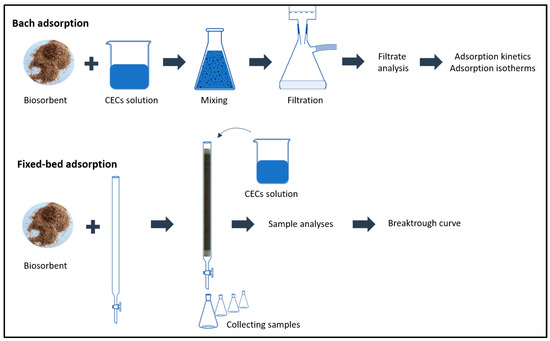 However, the analysis of CECs in real water samples requires very expensive advanced analytical approaches supported by dedicated software tools for screening numerous compounds at low levels, which means that a rather limited number of such studies might be reliably conducted at conditions existing in the environment. In addition, the management of saturated biosorbents is also a challenge, and finding an economical and environmentally friendly way to deal with this—including the problem of leaching or emission of the contaminants, the spent sorbent reuse, and/or regeneration while respecting the principals of sustainability and circular models—must fall within the scope of future research.
