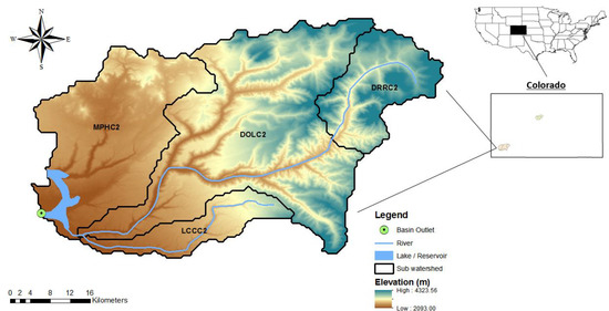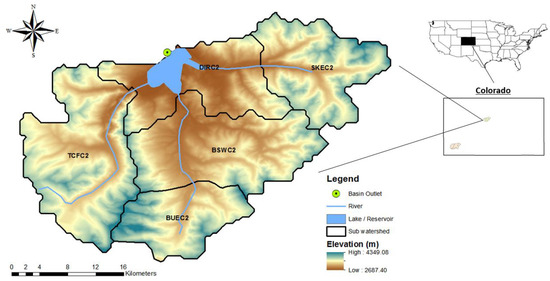 The average elevation of the Blue River watershed (3347 m) is higher than that of the Dolores River watershed (2786.54 m), whereas its total area (849.3 km