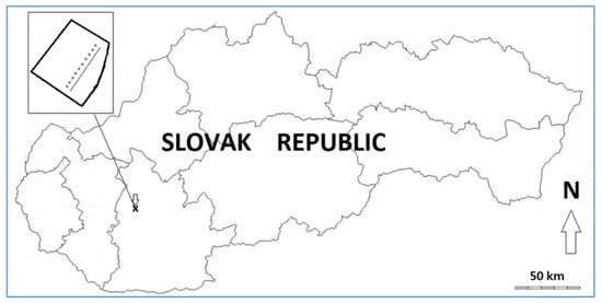 The targeted land with an area of 20 ha is located in the rural area of agricultural land in Kolíňany (Jelenecká, 48°22′06.28″ N, 18°12′26.67″ E, altitude from 191 to 209 m a.s.l., Figure 1).