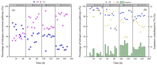 - Du, R.; Cao, S.; Peng, Y.; Zhang, H.; Wang, S. Combined Partial Denitrification (PD)-Anammox: A method for high nitrate wastewater treatment. Environ. Int. 2019, 126, 707–716. [Google Scholar] [CrossRef]