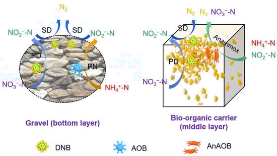 Peng, Z.; Liu, M.; Li, T.; Zhang, W.; Wang, Y.; Yu, L.; Ji, J. A Novel Layered and Advanced Nitrogen Removal Filter with Gravel and Embedded Bio-Organic Carrier Based on Autotrophic and Heterotrophic Pathways. Water 2023, 15, 1919. https://doi.org/10.3390/w15101919