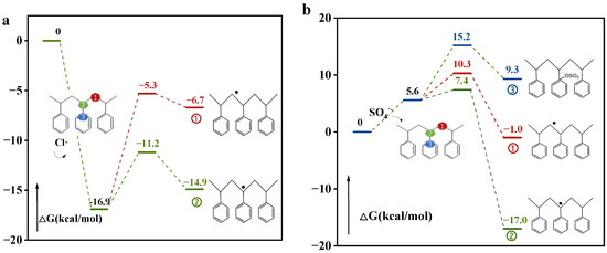 - DFT calculation coupled with HPLC analysis proposed the degradation pathways of PS-NP in two oxidative systems. The different reaction sites and energy barriers of SO4•− and •Cl on PS-NP resulted in the differences between the mineralization rate and degradation intermediates.